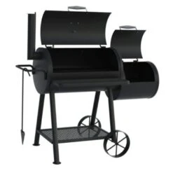Deze American barbecue Jaxon van Jamestown heeft alles in huis voor een geslaagde barbecue. Het onderstel met 2 wielen zorgt ervoor dat je grilt op een comfortabele werkhoogte en dat je de barbecue gemakkelijk kan verplaatsen. De zijtafel (45×27 cm) zorgt dan weer voor extra werkruimte. De barbecue beschikt over een ruimte grillplaat in gietijzer van 58 x 42,5cm waarop je gemakkelijk voor 8 personen kan koken. De ingebouwde thermometer tot slot zorgt ervoor dat je je vlees steeds op de juiste temperatuur kan bereiden.