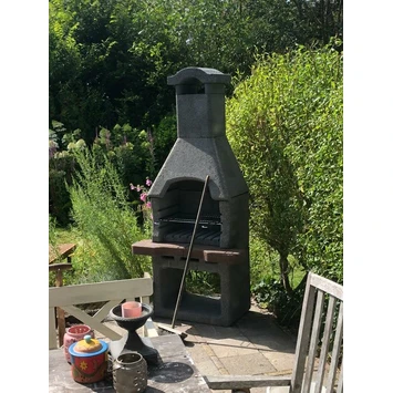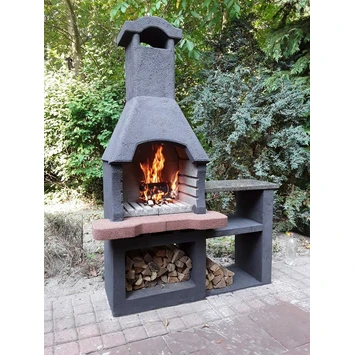 De betonnen BBQ type Novus is een barbecue gemaakt van betonnen onderdelen die u eenvoudig op kunt bouwen als barbecue. Deze degelijke barbecue kan het gehele jaar buiten blijven staan. U kunt het beton behandelen met een coating om het materiaal beter te beschermen tegen vocht en vorst. De BBQ is 93cm breed, 60cm diep en 195cm hoog en weegt 300kg. De barbecue wordt in grijs beton geleverd, alleen het werkblad is donkerrood gekleurd. De barbecue is geschikt om zowel kolen als hout in te stoken en wordt geleverd inclusief verchroomd grillrooster en kitlijm.