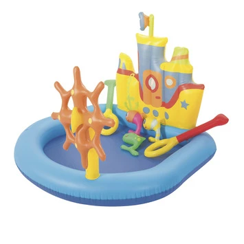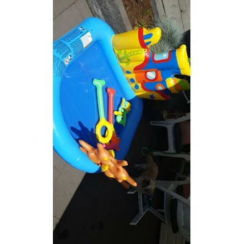 De opblaasbare speelboot met draaibaar stuurwiel bevat verschillende losse speel items en is geschikt voor kinderen vanaf 2 jaar en ouder. Stevig vooraf getest vinyl en inclusief kompas, 3 vissen, 2 hengels en een reparatiepatch.