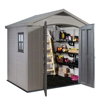 Deze Keter Factor 86 is een stevig kunststof tuinhuis doordat het is voorzien van aluminium profielen voor extra stabiliteit. De schuin aflopende vloer zorgt samen met de twee breed openslaande deuren voor een eenvoudige toegang tot het kunststof huisje. Ideaal voor het opbergen van motoren, scooters, fietsen, tuingereedschap, tuinmeubelen, kinderspeelgoed en tal van andere spullen. Na levering kan het Keter Factor 86 kunststof tuinhuisje direct worden opgebouwd, mits een vlakke ondergrond is voorbereid. Twee personen zijn er ongeveer 2-3 uur mee bezig om het Keter huisje op te bouwen. Doordat het huisje is voorzien van een bodemplaat wordt ervoor gezorgt dat je spullen schoon en droog blijven. Het raam aan de zijkant en de transparante balk in het dak zorgen voor voldoende licht in dit kunststoffen huis. Doordat het gemaakt is van kunststof kan het niet roesten, rotten of deuken.