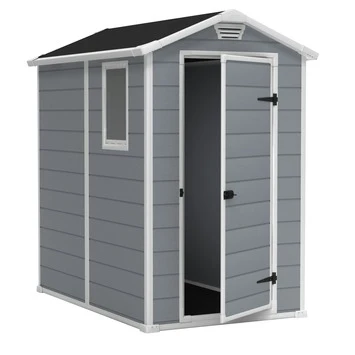 Voor de wat kleinere tuin is dit Keter Manor 46S tuinhuis ontworpen die natuurlijk ook goed past op een balkon. Dit schuurtje past met zijn houtlook uitstekend in een natuurlijke omgeving en heeft geen onderhoud nodig door het gebruik van hoog kwaliteit duurzaam kunststof. Het Keter kunststof tuinhuis Manor 46S is een compacte oplossing voor het opbergen van tuingereedschap, barbecues of kinderspeelgoed. Een ingebouwd ventilatiepaneel zorgt ervoor dat er in dit tuinhuisje een constante toevoer van lucht is en beschermt meteen tegen de schadelijke effecten van schimmels. Het bijgeleverde vloerpaneel zorgt voor een stabiele, schone en vochtvrije basis.