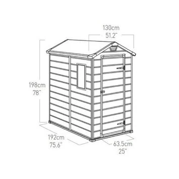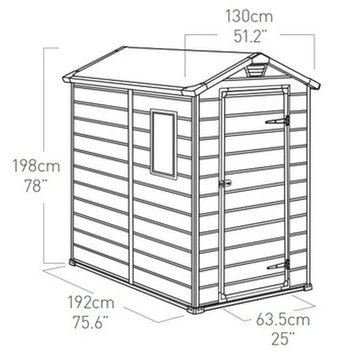 Deze Keter tuinhuis Manor 46S grijs biedt een stevige, onderhoudsvrije oplossing om je spullen in je tuin op te bergen. Het tuinhuisje heeft een buitenmaat van: L 130 x B 192 x H 198 cm en een binnenmaat: L 111 x B 177 x H 190 cm. De grote deur met stevige scharnieren, de dubbele wanden, versteviging in het frame en mogelijkheid om de opslag met een slot af te sluiten zorgen voor extra veiligheid en stevigheid. Montage is zeer eenvoudig met gebruik van standaard gereedschap. Na levering kan het Keter Manor 46S kunststof tuinhuisje direct worden opgebouwd, mits een vlakke ondergrond is voorbereid. Twee personen zijn er ongeveer 2-3 uur mee bezig om het Keter huisje op te bouwen. Kortom, met de koop van deze prachtige Keter Manor 46S tuinhuis heb je op betaalbare wijze een onverwoestbare en praktische extra opbergruimte in je tuin