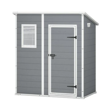Het tuinhuisje heeft een buitenmaat van: L 183 x B 111 x H 200 cm en een binnenmaat: L 168 x B 97 x H 195 cm. De deur, die een makkelijke toegang biedt, is voorzien van een grendel met plek voor een slot om je spullen veilig op te bergen. Na levering kan de Ketor Manor Pent kunststof tuinschuur direct worden opgebouwd, mits een vlakke ondergrond is voorbereid. Twee personen zijn er ongeveer 2-3 uur mee bezig om het Keter huisje op te bouwen. Kortom, met de koop van deze prachtige Keter Manor tuinhuis heb je op betaalbare wijze een onverwoestbare en praktische extra opbergruimte in je tuin.