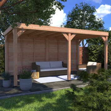 Deze Douglas terrasoverkapping met achterwand is een toegevoegde waarde voor iedere tuin. De karakteristieke look die Douglas hout jouw tuin in brengt zorgt voor een natuurlijke en vooral sfeervolle uitstraling. Het Douglas hout is een sterke soort tuinhout dat van nature goed bestand is tegen vuil en vocht. Deze houten overkapping is 522 cm breed en 270 cm diep en wordt geleverd inclusief EPDM-folie voor een waterdichte dakbedekking. Het totaalpakket staat extra stevig dankzij de 12×12 cm Douglas palen.
