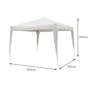 Deze partytent heeft een breedte van 3 meter, een lengte van 3 meter en een hoogte van 2,6 meter.