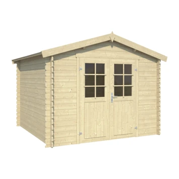 Dit tuinhuis is gemaakt uit geschaafd, maar verder onbehandeld Noord-Europees vurenhout. Dat vergt wat meer onderhoud dan gedompeld of geïmpregneerd hout of hout met een coating. Onbehandeld hout dien je namelijk zelf een goede basis te geven door het te behandelen. Daarna dien je het uiteraard, net als met voor behandeld hout, regelmatig te onderhouden om de levensduur van het huisje te verlengen. Het tuinhuisje impregneer, beits of verf je zowel aan de buiten- als binnenkant. Extra aandacht dien je te besteden aan deuren en ramen, want die zijn veruit het meest kwetsbaar. Het voordeel van onbehandeld hout is dat je zelf kan kiezen hoe je het wil afwerken en in welke kleur.