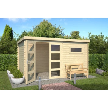 Dit tuinhuis is gemaakt uit geschaafd, maar verder onbehandeld Noord-Europees vurenhout. Dat vergt wat meer onderhoud dan gedompeld of geïmpregneerd hout of hout met een coating. Onbehandeld hout dien je namelijk zelf een goede basis te geven door het te behandelen. Daarna dien je het uiteraard, net als met voor behandeld hout, regelmatig te onderhouden om de levensduur van het huisje te verlengen. Het tuinhuisje impregneer, beits of verf je zowel aan de buiten- als binnenkant. Extra aandacht dien je te besteden aan deuren en ramen, want die zijn veruit het meest kwetsbaar. Het voordeel van onbehandeld hout is dat je zelf kan kiezen hoe je het wil afwerken en in welke kleur.