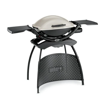Een makkelijk te vervoeren gasbarbecue met werkbladen die je ook op stahoogte kunt gebruiken. De Weber gasbarbecue Q2000 titaan 130×59 cm is een meeneembare elektrische BBQ met korte poten, maar dankzij de extra stand kun je ook werken op stahoogte. De werkbladen aan beide zijden van de BBQ geven je ruimte voor bijvoorbeeld het snijden van groenten. De buitenkant van de barbecue is van gietaluminium en het rooster van 54×39 cm is van geëmailleerd gietijzer, wat allebei roest zoveel mogelijk tegengaat en zorgt voor een gelijkmatige warmteverdeling. Dankzij het piëzo-ontstekingsmechanisme heb je de BBQ met een druk op de knop aan. Kortom: een meeneembare gasbarbecue van slechts 11 kilo met hoge prestaties
