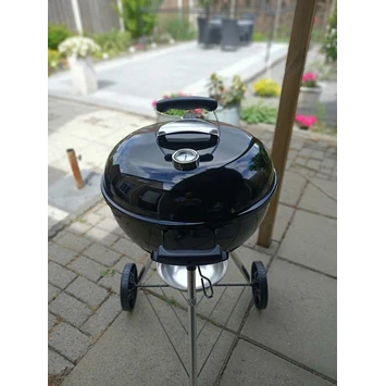 Met de zwarte houtskoolbarbecue Weber Original Kettle E-4710 voorzie je familie en vrienden van een geweldig etentje. De bbq is gemaakt uit zwart geëmailleerd staal en is voorzien van een verchroomd braadrooster van 47 cm, wat ruimschoots volstaat voor 8 personen. De deksel bevat een geïntegreerde thermometer zodat je je vlees steeds op de juiste temperatuur kan laten garen. De kuip is speciaal ontworpen om de warmte homogeen te verspreiden. Na de barbecue, kan je deze E-4710 gemakkelijk reinigen dankzij het One Touch-reinigingssysteem dat je toelaat alle as in een handomdraai te laten vallen in een grote, afneembare opvangbak.