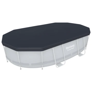 Afdekzeil met bevestigingskoord en gaten om overtollig water te lozen. Het afdekzeil valt over het zwembad heen. Let op: De poten van het zwembad steken aan de onderkant uit, waardoor de afmetingen van de hoes kleiner zijn dan de afmetingen van het zwembad. Afmeting: 418×230 cm.